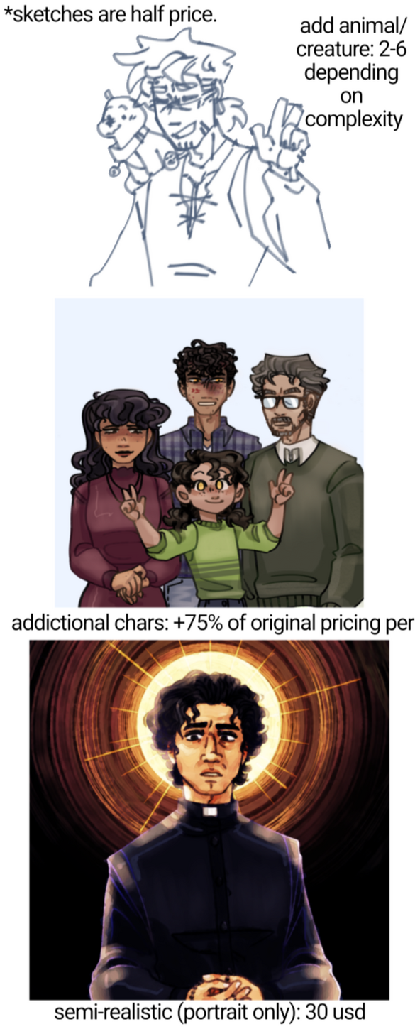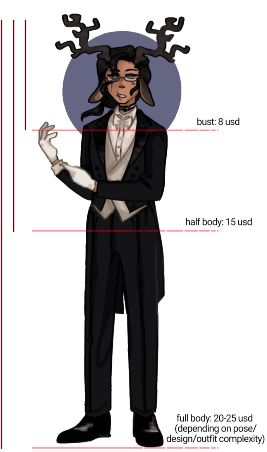 Pricing is non-commercial only. If you're interested in commissioning me for commercial work, DM me to negotiate prices.